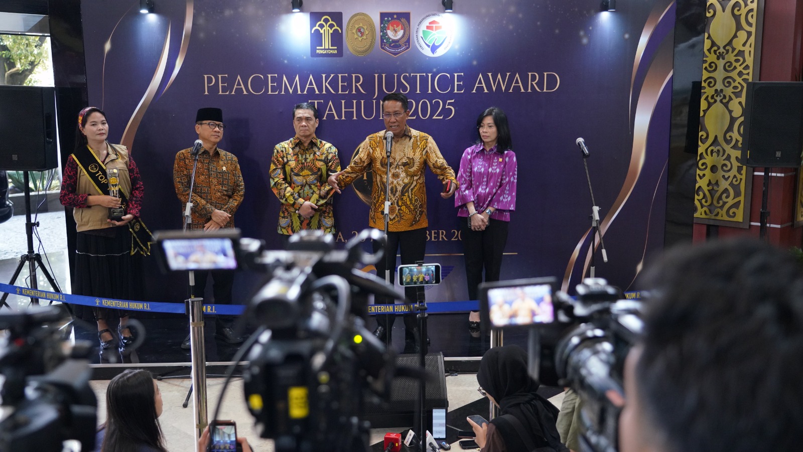 “Kepala Desa/Lurah dapat membantu mengupayakan penyelesaian permasalahan secara lebih humanis dan kolaboratif, dengan mengedepankan kebutuhan, hak, dan martabat masyarakat—people centered justice. Kegiatan Peacemaker Training yang telah kami lakukan merupakan bekal penting bagi mereka dalam menangani persoalan hukum nonlitigasi,” ujar Supratman dalam kegiatan Peacemaker Justice Award 2025, Rabu (26/11/2025) di Graha Pengayoman, Jakarta.
