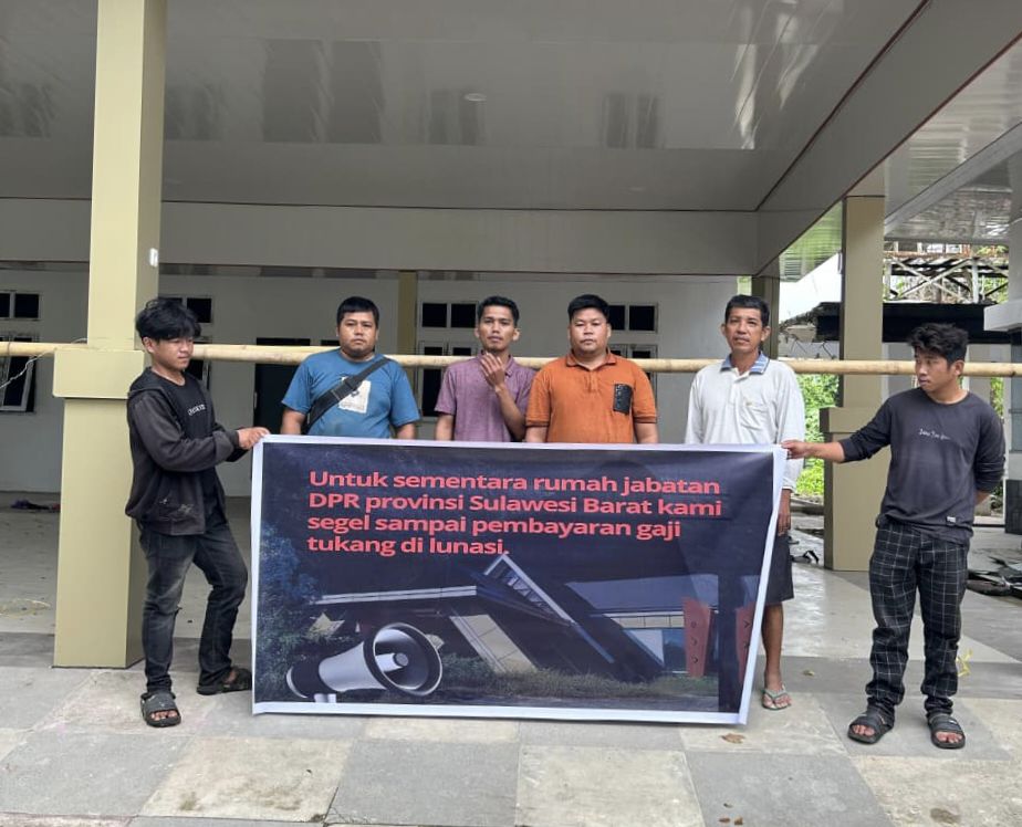 Mamuju, IndigoNews |Rumah jabatan (rujab) Ketua DPRD Provinsi Sulawesi Barat disegel oleh sejumlah pekerja bangunan dan Mahasiswa HMI Cabang Manakarra, sejak Senin, 5 Januari 2026. Penyegelan dilakukan sebagai bentuk protes karena upah para pekerja belum dibayarkan oleh pihak kontraktor pelaksana proyek, sebanyak 31 juta.
