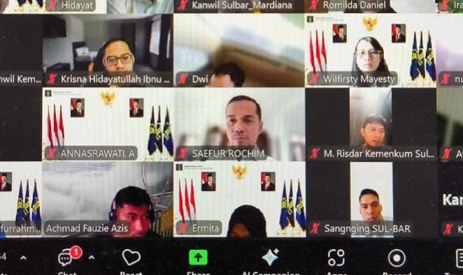 Mamuju, IndigoNews | Kepala Kantor Wilayah Kementerian Hukum Sulawesi Barat (Kakanwil Kemenkum Sulbar), Saefur Rochim, menekankan pentingnya menjaga soliditas dan kerja sama tim dalam memenuhi data dukung Lembar Kerja Evaluasi (LKE) menuju predikat WBK/WBBM.