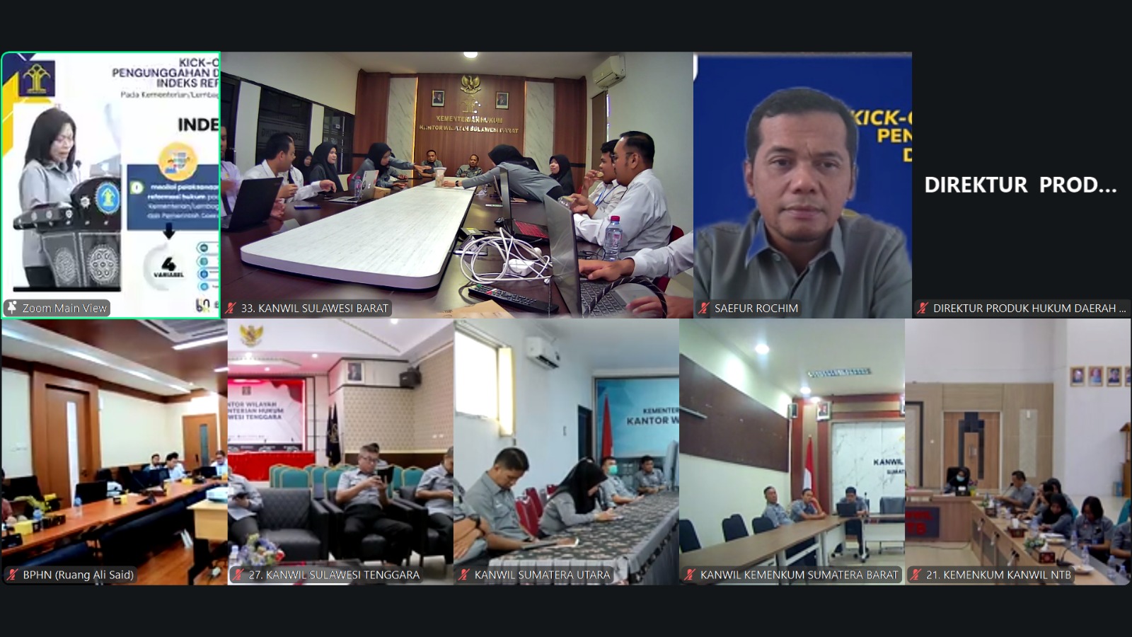 Mamuju, IndigoNews| Kepala Kantor Wilayah Kementerian Hukum Sulawesi Barat, Saefur Rochim, mengikuti secara virtual kegiatan Kick Off Meeting Pengunggahan Data Dukung Penilaian Indeks Reformasi Hukum (IRH) pada Kementerian/Lembaga dan Pemerintah Daerah Tahun 2026.