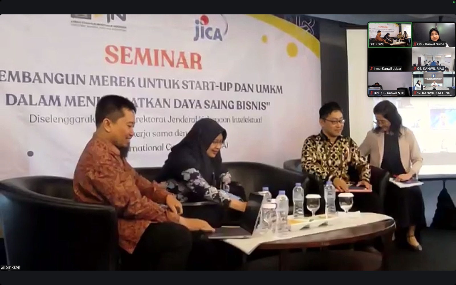 Terkait dengan itu, Kadiv Pelayanan Hukum, Hidayat Yasin bersama Kabid KI, Juani dan jajaran mengikuti seminar secara virtual “Membangun Merek untuk Start-Up dan UMKM dalam Meningkatkan Daya Saing Bisnis” yang diselenggarakan oleh Direktorat Jenderal Kekayaan Intelektual (DJKI) bekerja sama dengan Japan International Cooperation Agency (JICA), Rabu (18/2/2026).