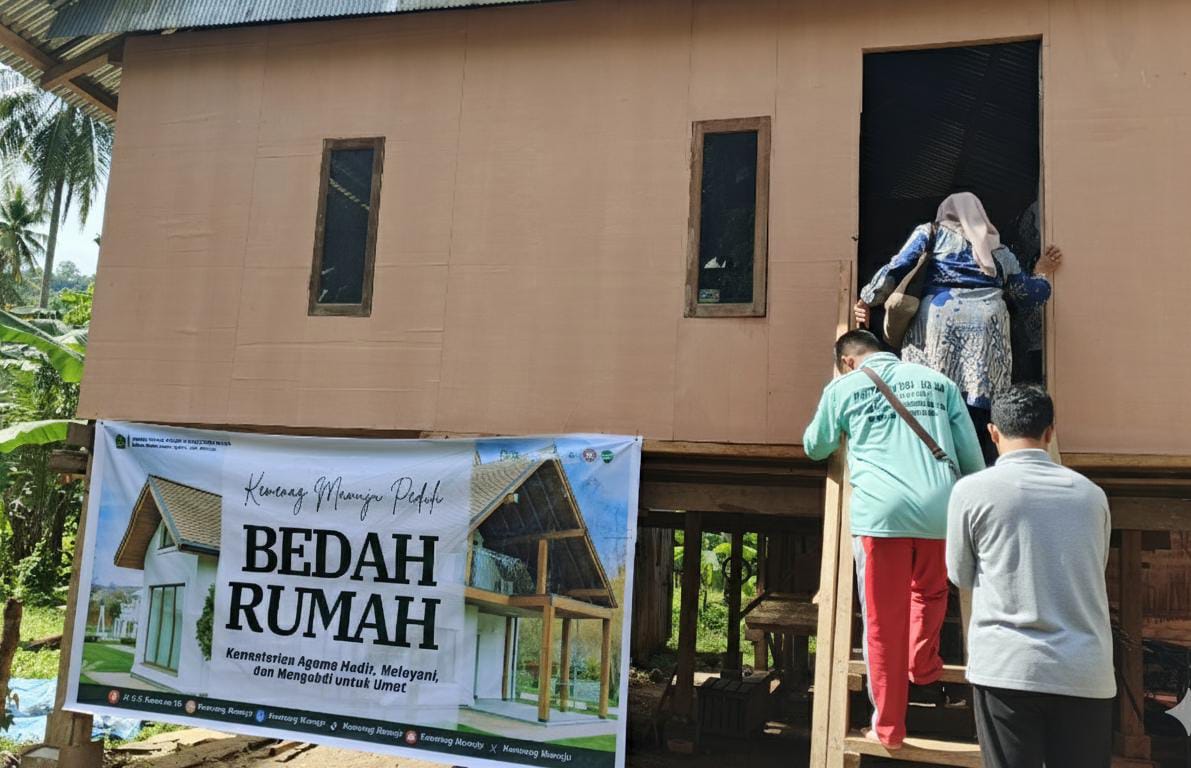 Mamuju, IndigoNews | Kementerian Agama (Kemenag) Kabupaten Mamuju melalui program Kemenag Mamuju Peduli menyalurkan bantuan bedah rumah yang diprakarsai Unit Pengumpul Zakat (UPZ) bekerja sama dengan Kemenag. Kamis, (18/12/2025).