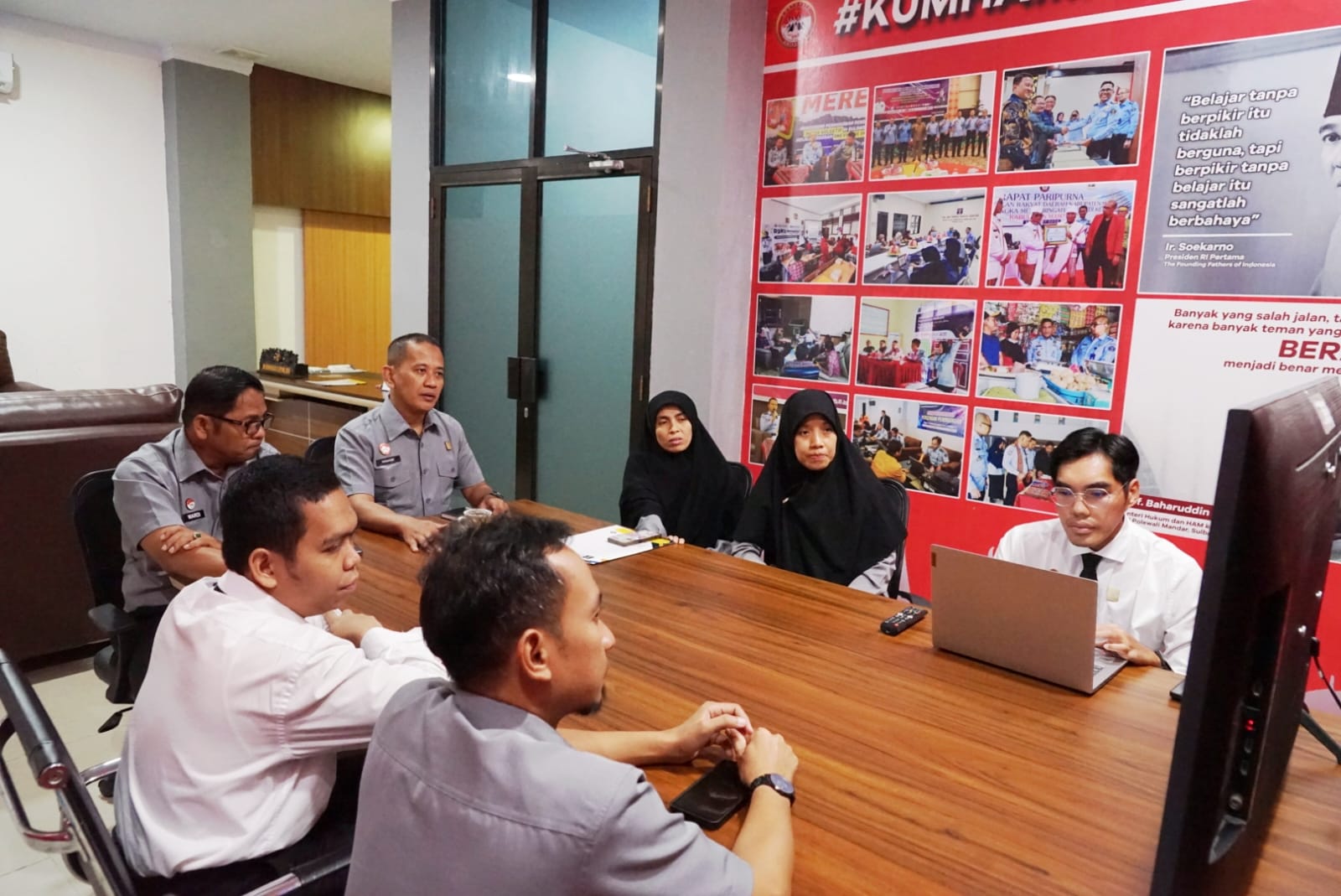 Dalam rapat tersebut dibahas pemenuhan dokumen yang menjadi indikator penilaian, guna memastikan kesiapan Kanwil Kemenkum Sulbar dalam menghadapi proses evaluasi.