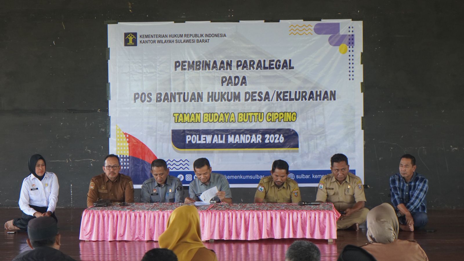 Hal itu disampaikannya pada pelaksanaan pemantauan, pembinaan, serta pendampingan bagi paralegal dan kepala desa/lurah pada Pos Bantuan Hukum (Posbankum) di Kabupaten Polewali Mandar, Rabu (11/3/2026) yang digelar di Taman Budaya Buttu Ciping, Kecamatan Tinambung Polewali Mandar.