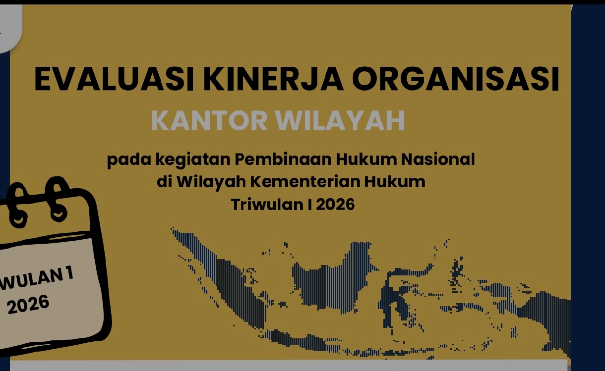 Mamuju, IndigoNews | Kantor Wilayah Kementerian Hukum Sulawesi Barat kembali menorehkan capaian dengan meraih predikat Sangat Baik pada Evaluasi Kinerja Organisasi Kantor Wilayah dalam kegiatan Pembinaan Hukum Nasional Triwulan I Tahun 2026. Jumat (24/4/2026).