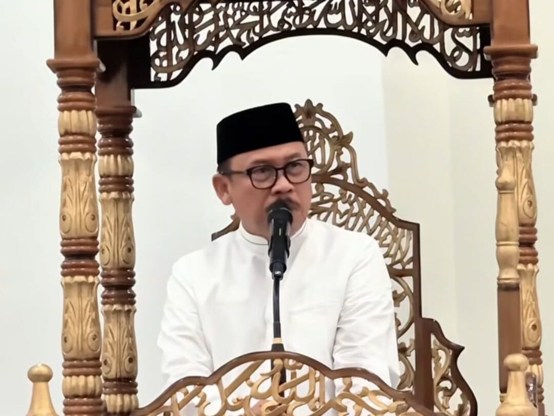 Di atas mimbar, ia mengajak jemaah memanfaatkan Ramadan untuk memperbanyak amal dan tetap hidup sederhana meski berada dijabatan yang tinggi.